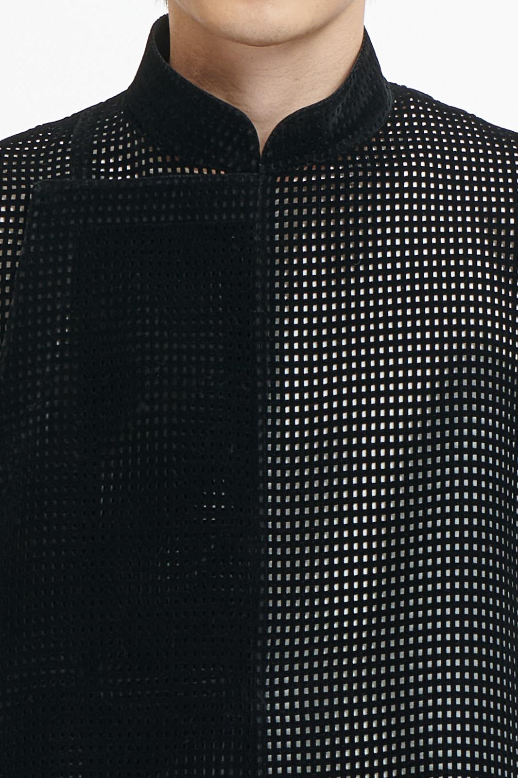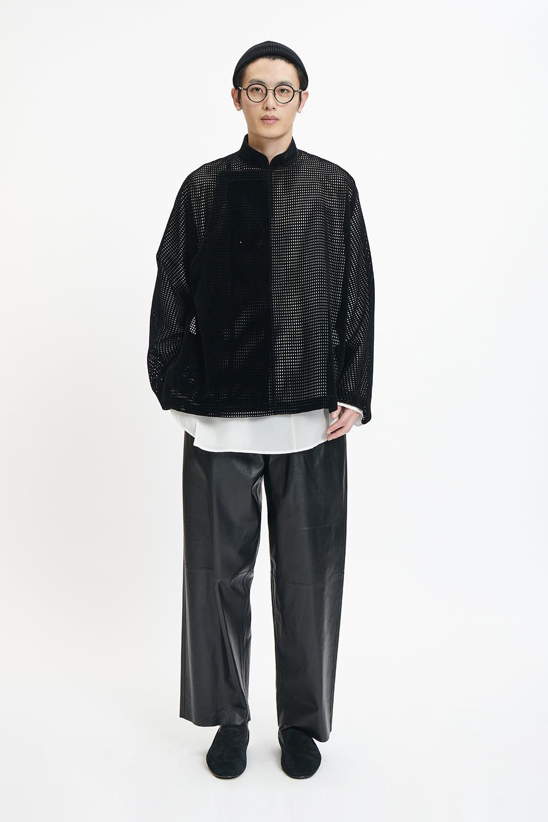 Black Velvet Loose-Fit Hollow-Out Long Chinese Top