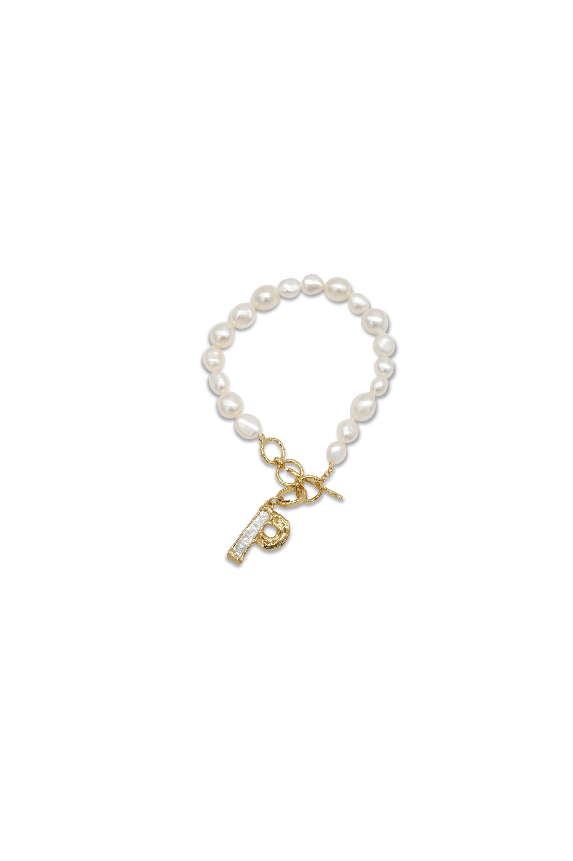 Bracelet or Bag Charm made with fresh water pearls and 18k yellow gold plated silver.