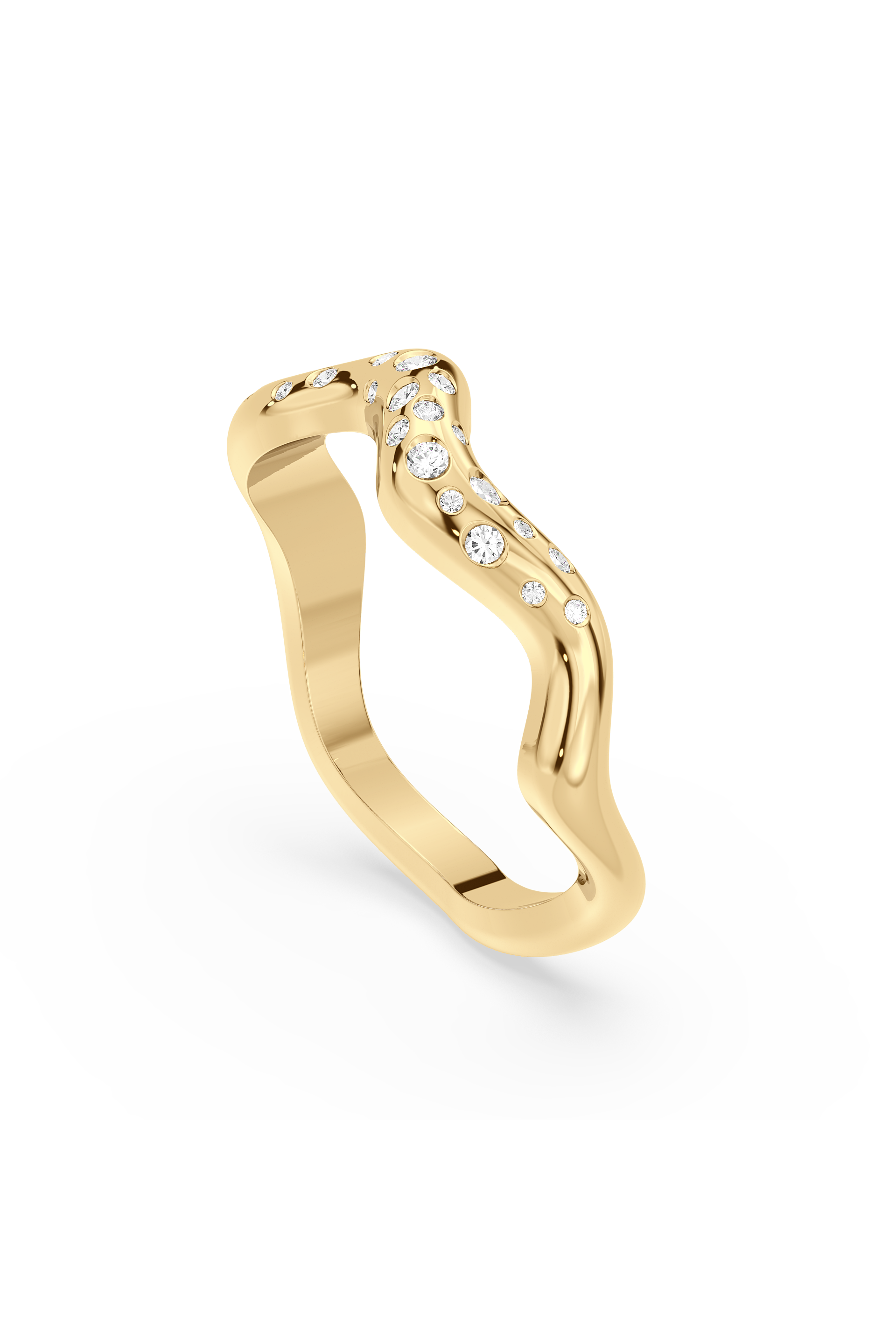 Subtle yet charismatic, the Undula Band is a contemporary and curvy yellow gold line with scattered brilliant diamonds. This new version features bigger diamonds for an increase of sparkle!