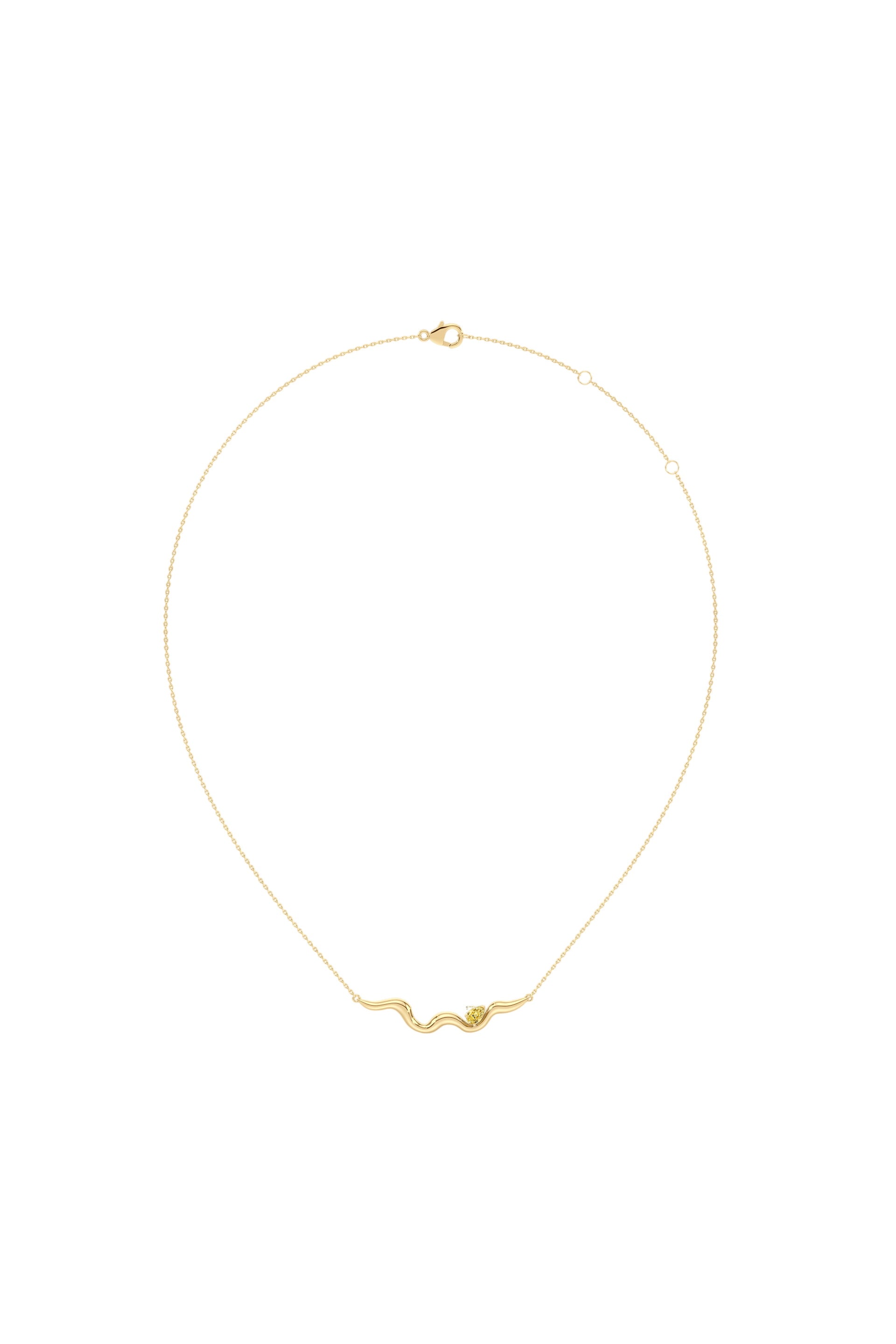 For yellow lovers. This Undula Pendant features a curvy yellow gold line asymmetrically set with a natural pear-shaped yellow diamond.